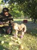 aujourd'hui nous avons ramassé les coings !Manon s'est régalée ! Mon père l'a embauchée !! Elle en a ramassés pas mal et ensuite la récompense a été la balançoire fabriquée par son pépé !!